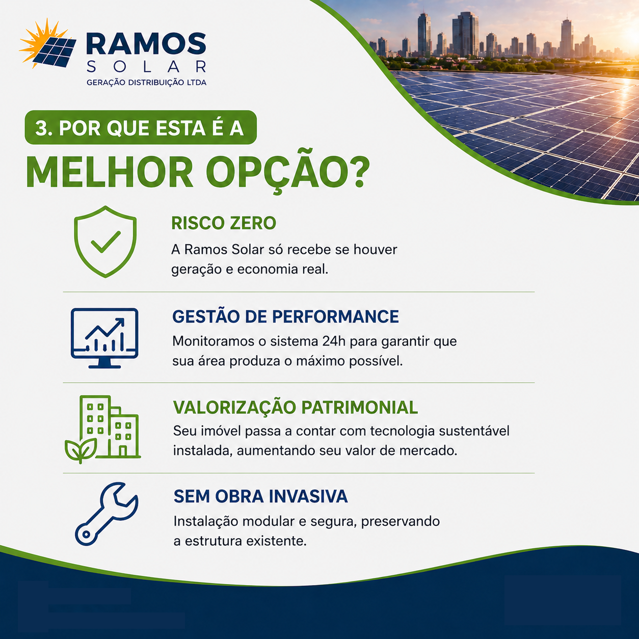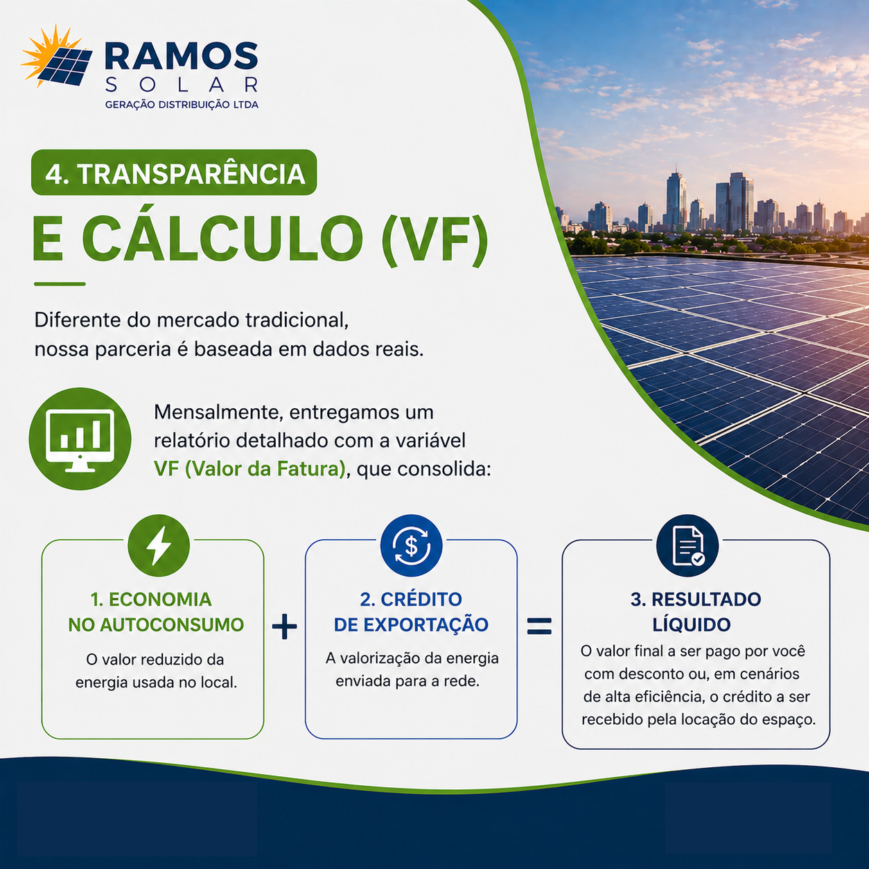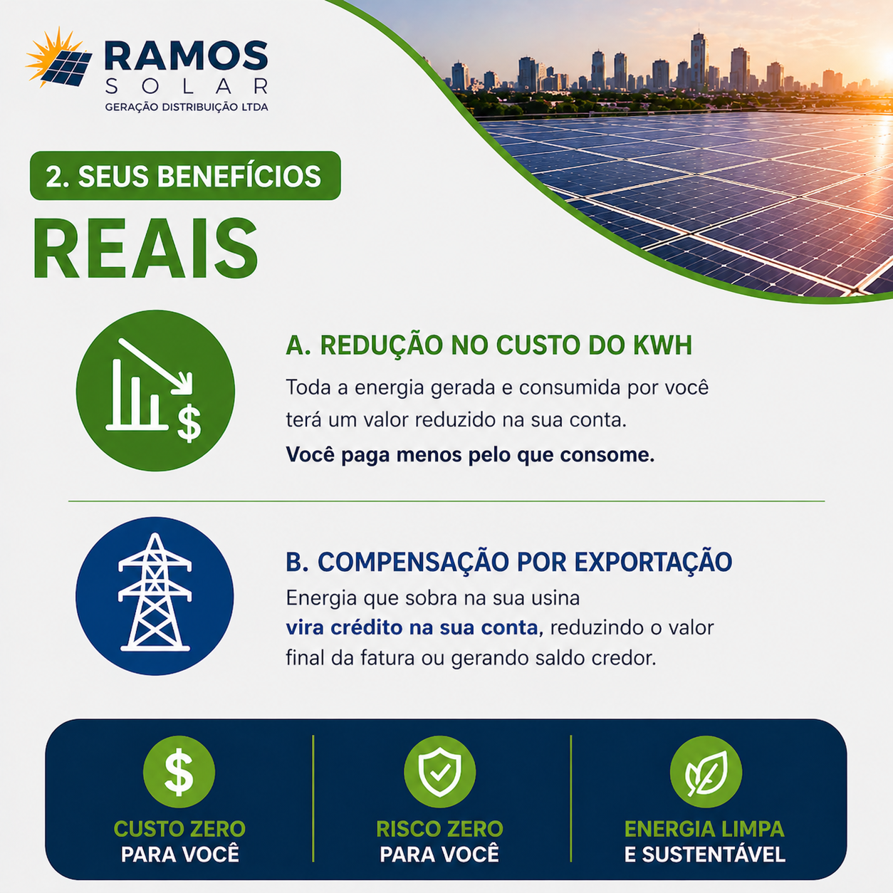 A Ramos Solar só recebe se houver geração e economia real para você.